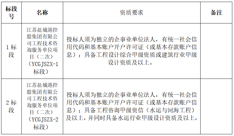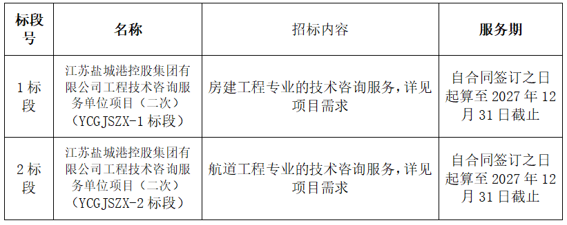 江蘇鹽城港控股集團(tuán)有限公司因工作需要,現(xiàn)通過公開招標(biāo)方式,選擇技術(shù)咨詢服務(wù)單位,請(qǐng)潛在的投標(biāo)人參加本服務(wù)采購的投標(biāo)報(bào)名,現(xiàn)就有關(guān)事項(xiàng)公告如下。