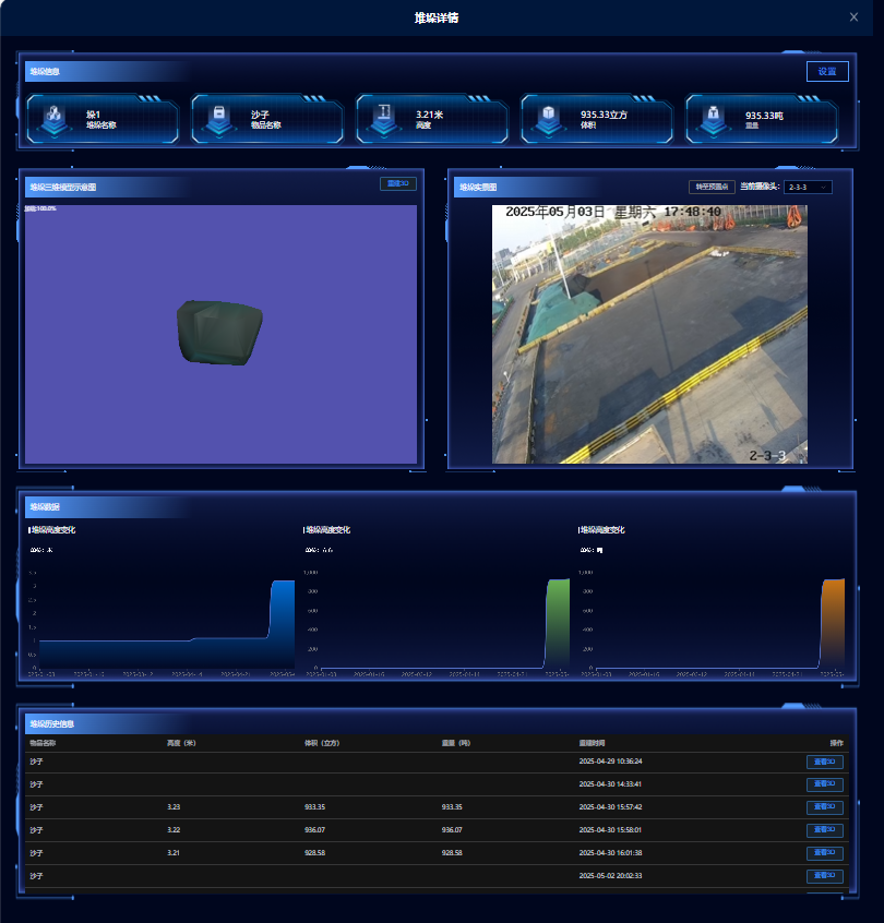堆垛三維重建測量系統(tǒng)頁面示意圖