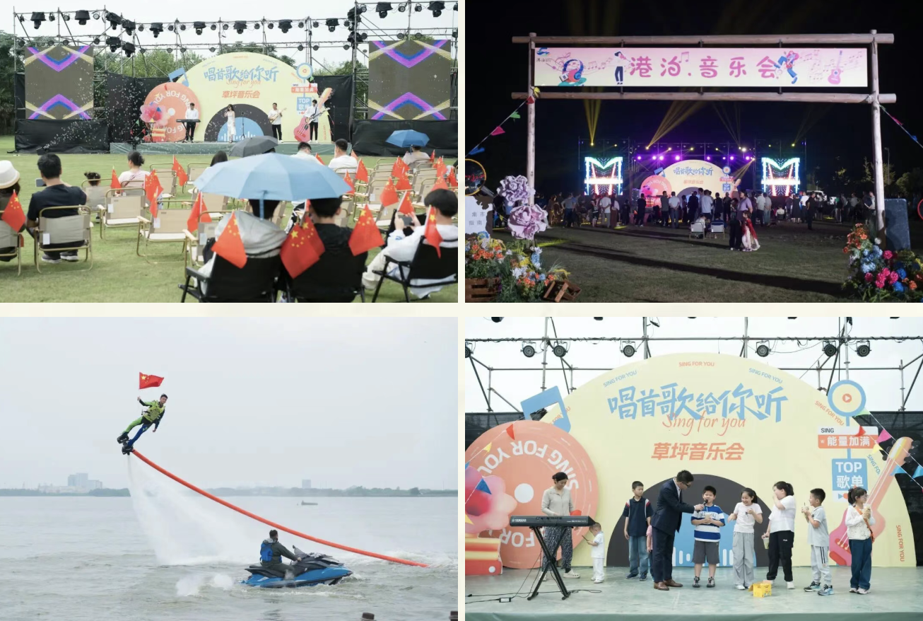 如果說非遺是文化的沉淀,那么音樂、露營與水上運(yùn)動(dòng)則為假日注入了青春活力。日月湖上,摩托艇、空中飛人等水上項(xiàng)目吸引年輕人逐浪而行;草坪露營區(qū)飄起燒烤香氣,伴隨著民謠樂隊(duì)的現(xiàn)場演唱,游客們圍坐暢談,盡享秋日浪漫。創(chuàng)意市集與文創(chuàng)展區(qū)不僅為游客提供了將好物帶回家的機(jī)會,更讓人們通過視覺、聽覺、味覺、觸覺等多維度的感受,領(lǐng)略港泊文旅的獨(dú)特韻味?!皼]想到非遺能這么潮!白天玩水上項(xiàng)目,晚上看火壺表演,假期安排得滿滿當(dāng)當(dāng)。”從南京自駕而來的游客表示。