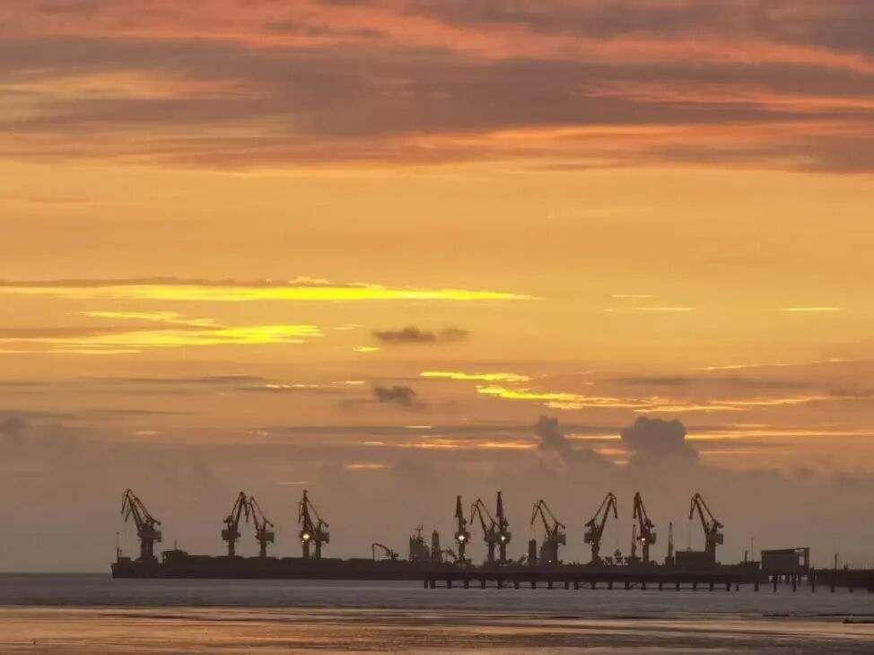 初陽浸染的碼頭上