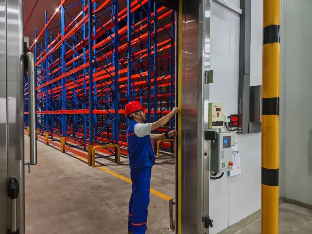 為減少冷量流失、降低設(shè)備運(yùn)行壓力,港匯保稅從“規(guī)范管理+物理防護(hù)”雙管齊下。優(yōu)化開(kāi)門(mén)管理:明確冷庫(kù)門(mén)使用規(guī)范并張貼展板上墻,同步優(yōu)化作業(yè)流程,單次開(kāi)門(mén)作業(yè)不超過(guò)5分鐘、非必要不頻繁開(kāi)關(guān)門(mén),減少冷量外泄;強(qiáng)化保溫修補(bǔ):定期檢查庫(kù)體保溫層,對(duì)發(fā)現(xiàn)的裂縫、孔洞等破損,采用高性能保溫材料及時(shí)修補(bǔ),從源頭減輕制冷設(shè)備負(fù)荷,既延長(zhǎng)設(shè)備使用壽命,又進(jìn)一步減少能耗損耗。