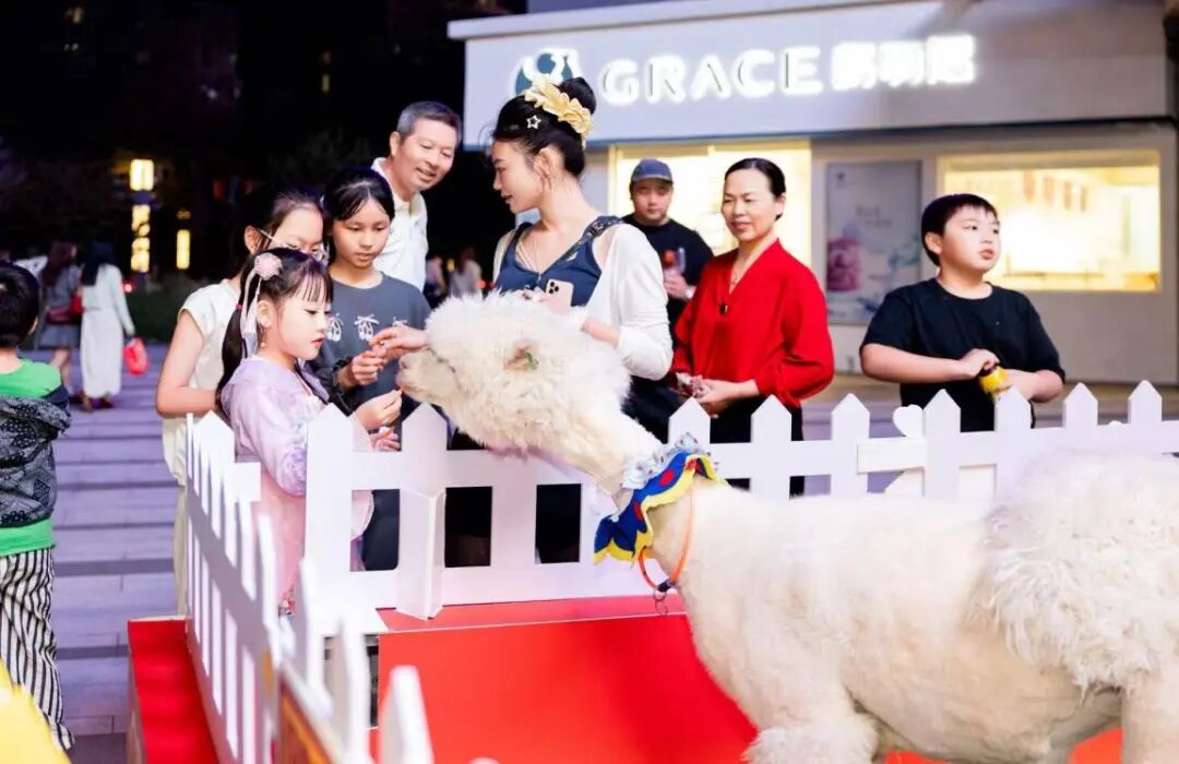 本次活動中,溫順的羊駝與憨厚的奶牛再度亮相寶龍、射陽體驗館,成為吸引家庭客流的“流量密碼”。孩子們在家長的陪伴下,與這些可愛的動物朋友親密接觸、拍照打卡,現(xiàn)場歡聲笑語不斷。熟悉的動物互動環(huán)節(jié)不僅成功營造了歡樂祥和的節(jié)日氛圍,更顯著增強(qiáng)了線下活動的吸引力與參與感,讓購物體驗超越了簡單的買賣,升級為一場溫馨的親子嘉年華。