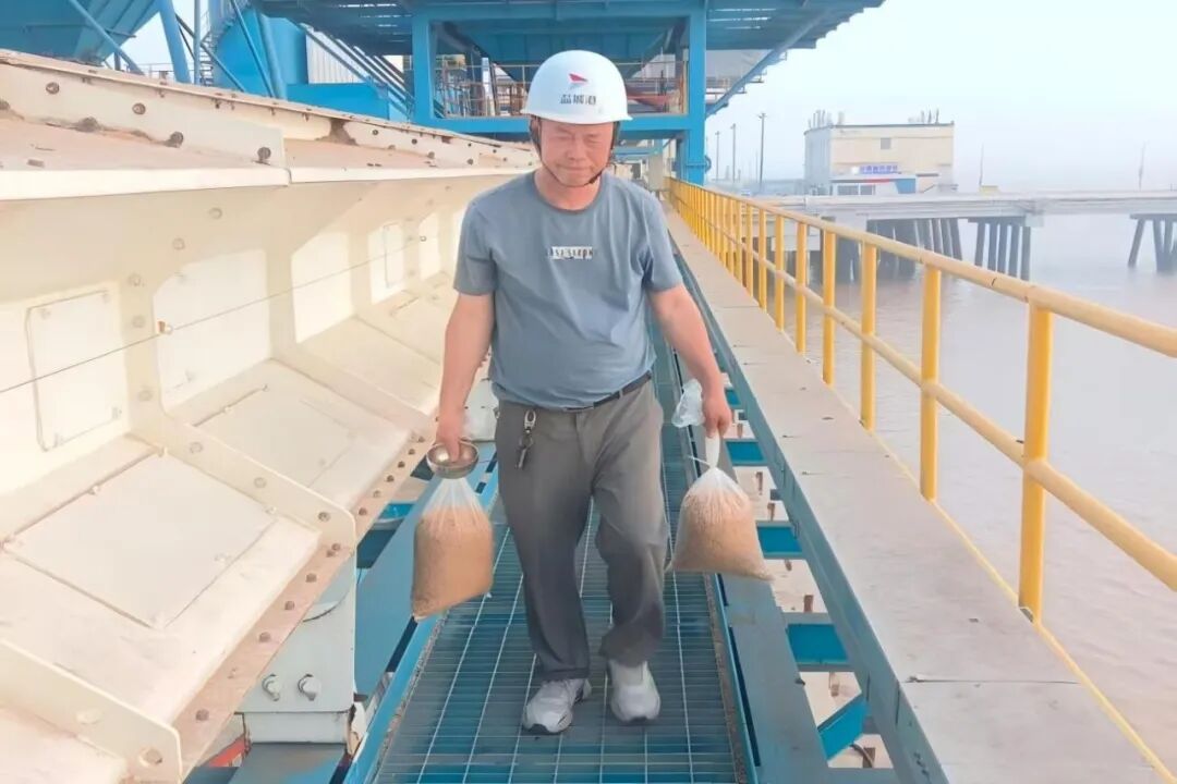 70后的顧西錦,日常主要全力配合貨代外勤推進(jìn)工作,承擔(dān)關(guān)鍵輔助職責(zé)。他像一塊穩(wěn)穩(wěn)矗立的老基石,話不多卻句句扎實(shí),用極致的細(xì)致與可靠,成為外勤團(tuán)隊(duì)不可或缺的“堅(jiān)強(qiáng)后盾”,將“務(wù)實(shí)精進(jìn)”的精神融入每一次業(yè)務(wù)辦理中。盛夏時節(jié),貨場地表溫度突破40℃,熱浪裹挾著大豆的豆腥味撲面而來,粗糙的豆粒在滿是汗水的掌心滾動,他的后背早已濕透得能擰出水來。即便汗水流進(jìn)眼里,帶來陣陣刺痛,他也只是飛快地抹一把,生怕耽誤后續(xù)檢測時效。他常說:“咱們的工作容不得半點(diǎn)馬虎,就是要把每一件小事做細(xì)、做扎實(shí),精進(jìn)就是把每一次遇到的問題,都變成提升自己、改進(jìn)工作的機(jī)會?!闭沁@份細(xì)致與堅(jiān)持,讓團(tuán)隊(duì)協(xié)作更加順暢高效,也讓“務(wù)實(shí)”的基因在工作中代代傳遞。