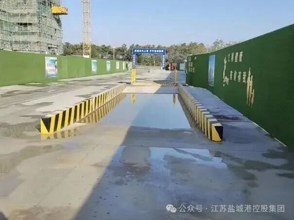 工程車駛?cè)腴L方形水池,兩側(cè)黃黑警示樁如衛(wèi)士列隊(duì)。這里是車輛的“美顏艙”!車輪裹挾的泥土被水流循環(huán)沖刷,污水沉淀后重復(fù)利用,確保每一輛出場車輛都“凈身出戶”,絕不讓泥漿污染城市道路。圍擋上“文明健康 有你有我”的標(biāo)語,正是它的環(huán)保宣言。