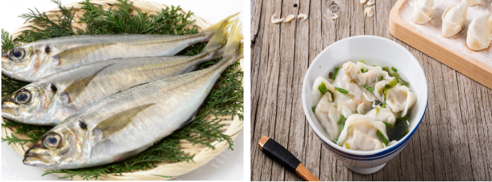 刀魚餛飩的制作主要是制皮和制餡。餛飩皮選用精白面粉加入蛋清和刀魚骨架湯代替水來(lái)和面。制成的皮,韌性足,味鮮,久煮不爛,晶瑩潤(rùn)澤。制餡精選早春出水的新鮮肥碩的雌刀魚,口感細(xì)、滑、香、鮮,回味無(wú)窮。
