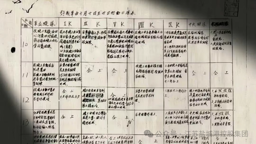 《野戰(zhàn)軍由十月十日至二十日行動日程表》,這是紅軍長征發(fā)布的第一份行動計劃。