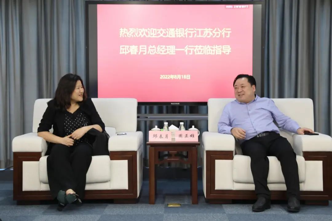 8月18日,交通銀行江蘇省分行投行部總經(jīng)理邱春月率隊(duì)拜訪我集團(tuán),就相關(guān)項(xiàng)目合作展開交流。集團(tuán)黨委書記、董事長、總經(jīng)理周正雄接待邱春月一行。大豐港區(qū)主要負(fù)責(zé)同志等參加。