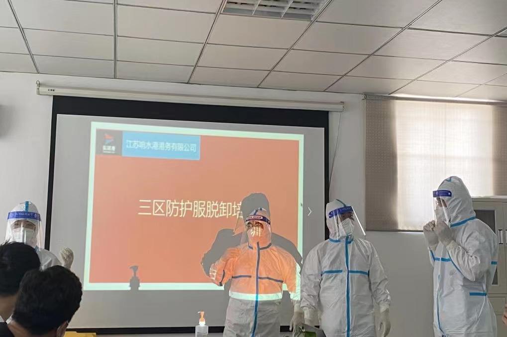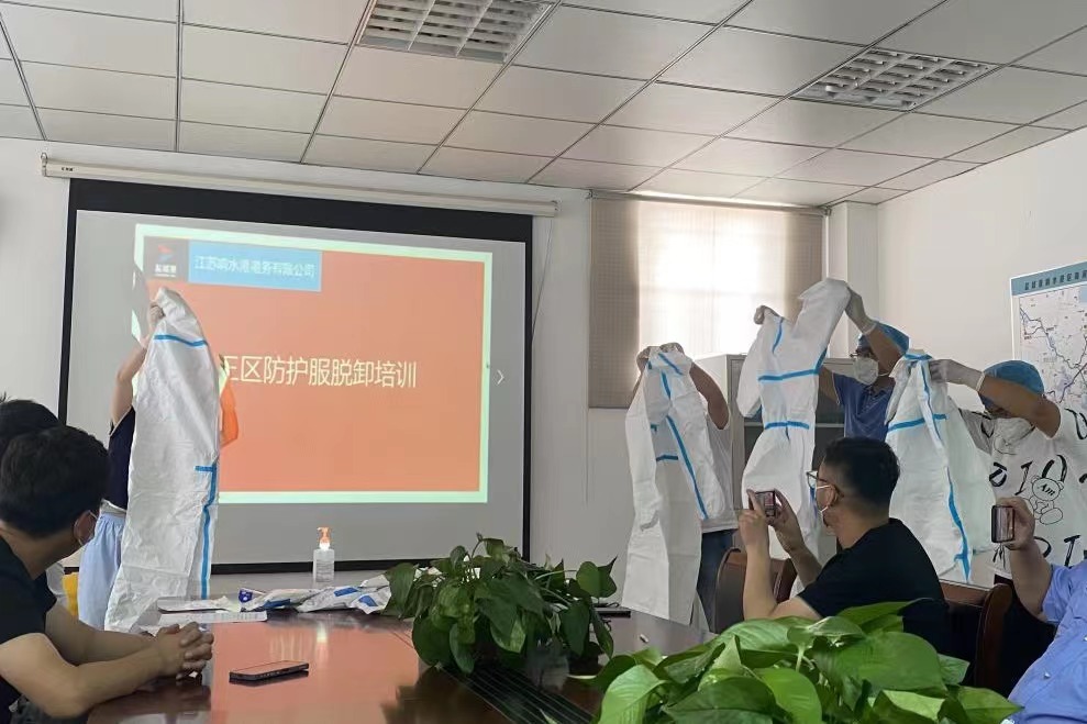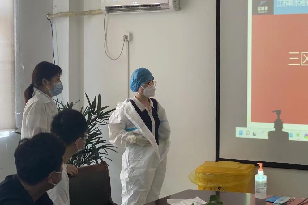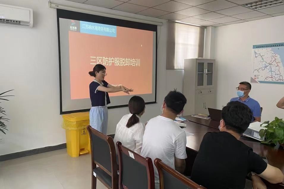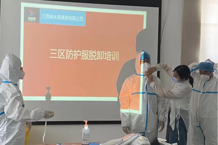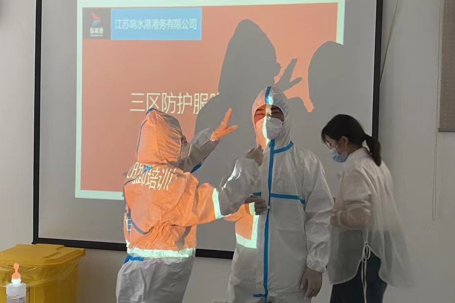 為堅(jiān)決打好新型冠狀病毒疫情防控阻擊戰(zhàn),全面提高應(yīng)對疫情的響應(yīng)能力,熟悉應(yīng)急處置具體流程,從嚴(yán)抓好疫情防控工作,近日,響水港區(qū)港務(wù)公司特邀響水縣港城醫(yī)院專職醫(yī)護(hù)人員,對港區(qū)作業(yè)人員進(jìn)行疫情防控相關(guān)的三區(qū)防護(hù)服穿脫消殺培訓(xùn)。
