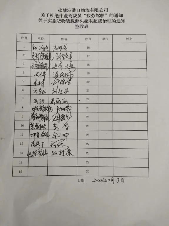 為全面做好港區(qū)作業(yè)車輛超限超載治理工作,切實(shí)加大貨運(yùn)源頭治理力度,保障道路交通運(yùn)輸安全。近期,鹽城港港口公司物流公司認(rèn)真組織職工學(xué)習(xí)貫徹國(guó)務(wù)院安委會(huì)安全生產(chǎn)“十五條”硬措施和鹽城港集團(tuán)“三位一體”工作部署要求,堅(jiān)持“人民至上,生命至上”的理念,嚴(yán)格落實(shí)《關(guān)于實(shí)施貨物裝載源頭超限超載的通知》、《關(guān)于杜絕作業(yè)駕駛員“疲勞駕駛”的通知》等文件要求,全力開展安全運(yùn)輸“三步走”工作。
