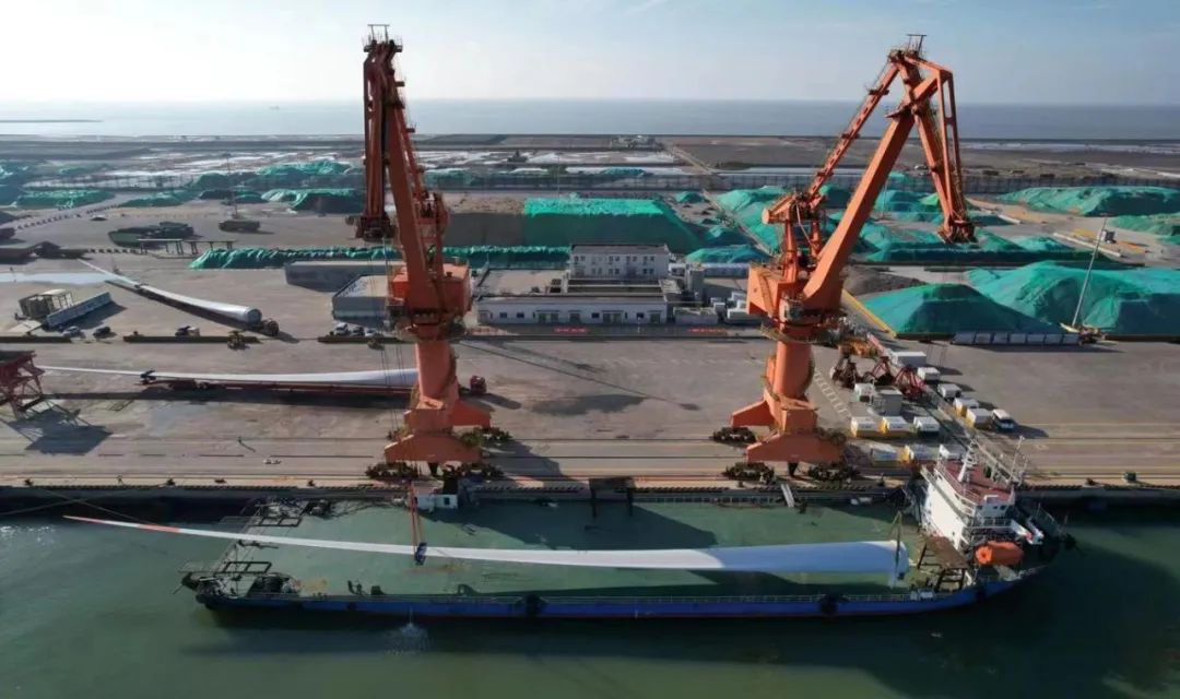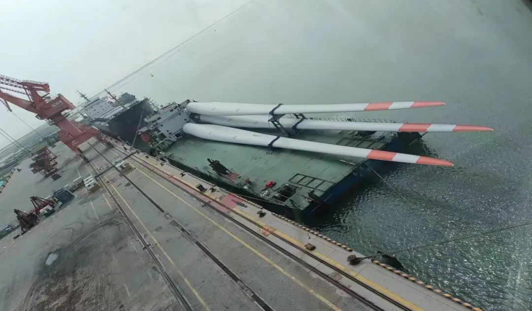 國(guó)電投山東海陽(yáng)項(xiàng)目首套風(fēng)電設(shè)備系濱海港建港以來(lái)進(jìn)港海運(yùn)最大的風(fēng)力葉片,全長(zhǎng)97米。此次運(yùn)載的風(fēng)力葉片從南通運(yùn)至濱海港區(qū)碼頭,由于該葉片體身長(zhǎng),運(yùn)輸過(guò)程中涉及安全系數(shù)較大,為確保萬(wàn)無(wú)一失,從327省道轉(zhuǎn)入濱海港區(qū)后,生產(chǎn)經(jīng)營(yíng)條線安排專班人員實(shí)時(shí)跟蹤服務(wù),及時(shí)協(xié)調(diào)清理影響拐彎的部分隔離護(hù)欄,保障途中各轉(zhuǎn)彎要道口的通行安全,順利抵達(dá)目的地——濱海港碼頭1號(hào)泊位。至此,三根風(fēng)葉片全部被安全高效地裝載上貨輪,運(yùn)往國(guó)電投山東海陽(yáng)目的地。
