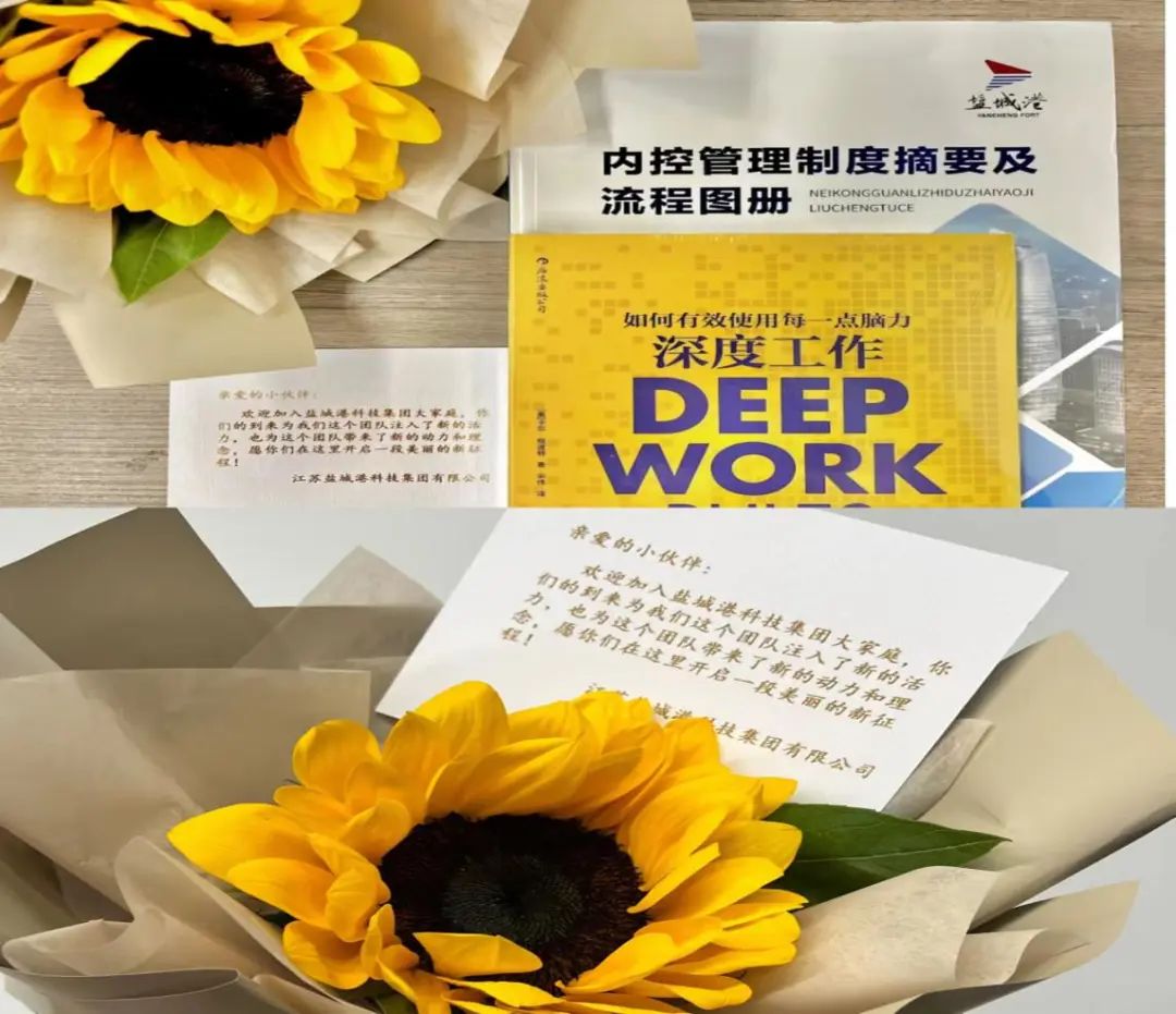 活動(dòng)中,科技集團(tuán)還為新員工準(zhǔn)備了集團(tuán)制度匯編、管理類(lèi)書(shū)籍及歡迎賀卡。