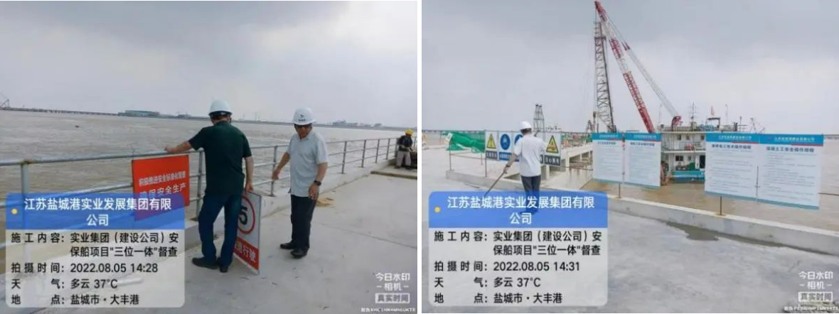 圖為安保船現(xiàn)場安全整改懸掛安全警示標(biāo)牌