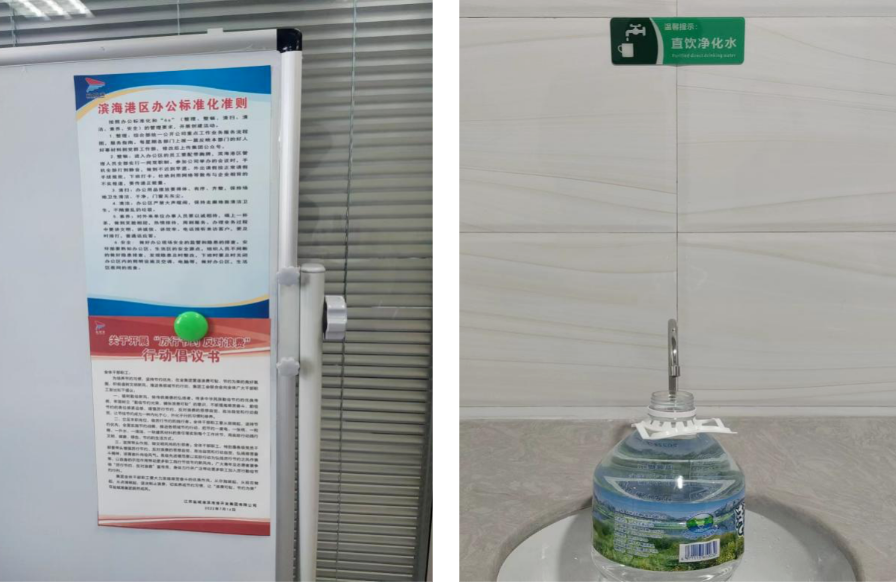 與此同時(shí),濱海港區(qū)還在宿舍生活集聚區(qū)、辦公區(qū)各樓層共安裝了7臺(tái)凈化飲水機(jī),一改過去瓶裝用水浪費(fèi)現(xiàn)象的發(fā)生,弘揚(yáng)了節(jié)儉美德,杜絕了鋪張浪費(fèi)。對(duì)公眾場(chǎng)所場(chǎng)地用水處,放置了反對(duì)浪費(fèi)、節(jié)約為榮,惜水、愛水(節(jié)水,從我做起)、安全用電等宣傳標(biāo)牌,以多種形式營(yíng)造綠色節(jié)儉、文明用水、安全用電的勤儉氛圍。