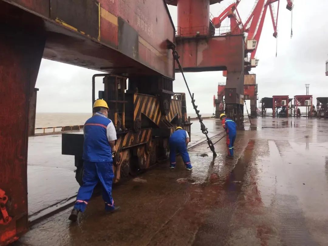 面對臺(tái)風(fēng)“梅花”帶來的惡劣天氣影響,散貨碼頭分公司加強(qiáng)應(yīng)急物資儲(chǔ)備、重點(diǎn)部位排查,嚴(yán)格執(zhí)行值班值守制度,全力以赴做好各項(xiàng)防御工作。截至14日18:00,共巡檢門機(jī)、配電室隱患8處,配備沙包、鐵鍬、雨衣、雨靴、手電筒等物資30余件。安排值班人員12人,制定防臺(tái)風(fēng)巡檢簽字表2種,張貼安全警示標(biāo)語5條,加固相關(guān)設(shè)備設(shè)施9處,竭盡全力做好各項(xiàng)防臺(tái)應(yīng)急備戰(zhàn)工作。