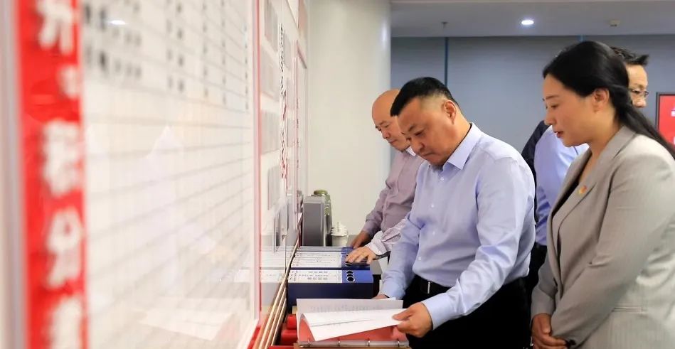 與會(huì)人員現(xiàn)場(chǎng)觀摩了陸港集團(tuán)機(jī)關(guān)黨支部黨建、群團(tuán)開(kāi)展工作亮點(diǎn)展示,詳細(xì)了解該支部標(biāo)準(zhǔn)化建設(shè)臺(tái)賬資料整理、黨建陣地規(guī)范化建設(shè)情況。