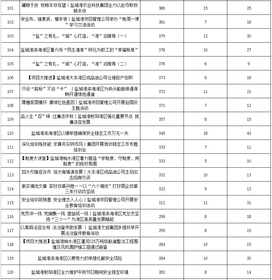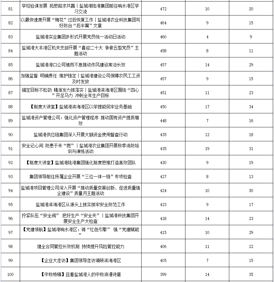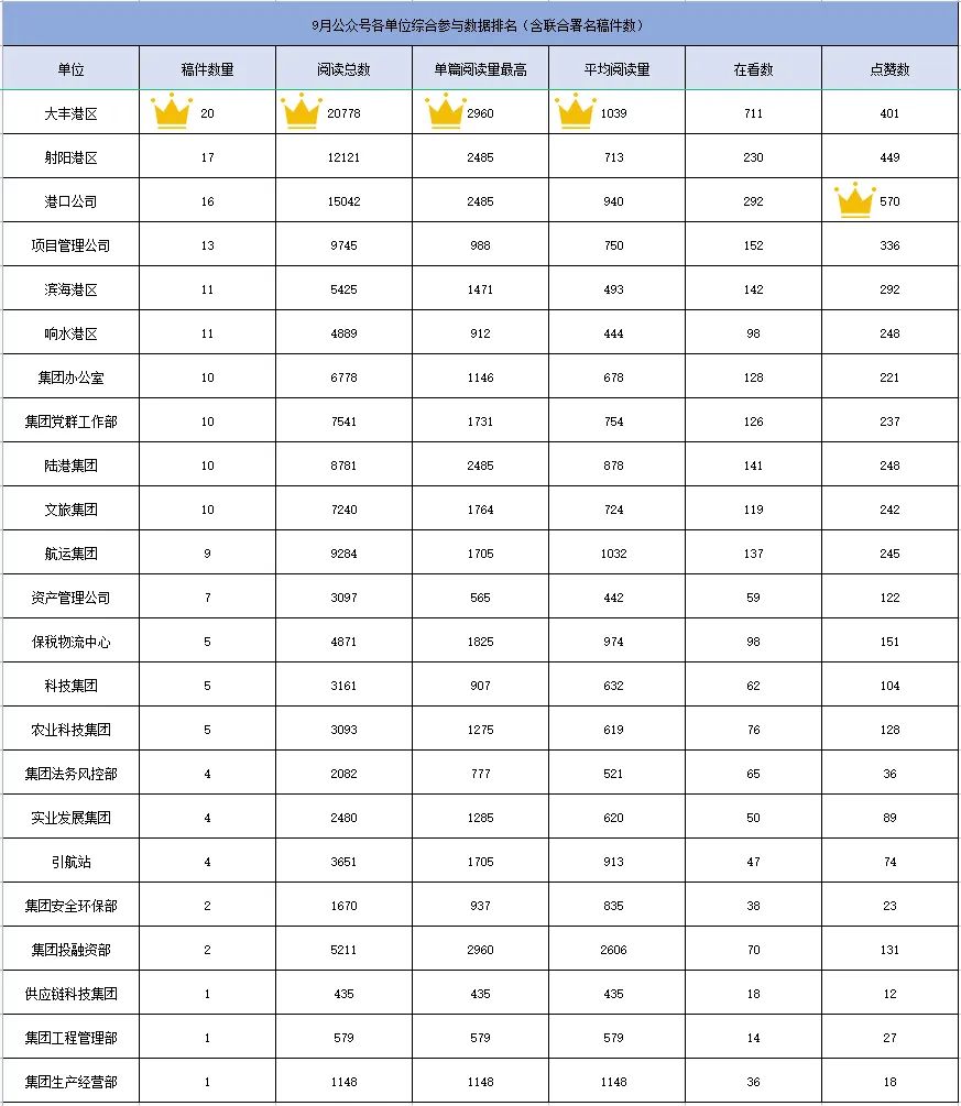 公眾號各單位綜合參與數(shù)據(jù)排名