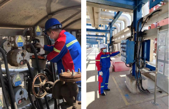 為切實(shí)做好各類事故防范,石化碼頭加強(qiáng)對(duì)重點(diǎn)區(qū)域、重點(diǎn)部位的檢查,逐一核查所有泊位的水管線、閥門的排水,并全部采取保溫措施,杜絕出現(xiàn)“跑、冒、滴、漏”現(xiàn)象,確保極寒天氣下工藝管線保持正常運(yùn)行狀態(tài)。為確保在突發(fā)情況下輸油臂能夠及時(shí)收回、正常鎖定,石化碼頭各泊位工作人員對(duì)輸油臂內(nèi)臂、外臂鎖定裝置和固定繩進(jìn)行了專項(xiàng)檢查維護(hù),并在潤滑保養(yǎng)項(xiàng)目中對(duì)鎖定裝置進(jìn)行保養(yǎng)維護(hù),保障輸油臂在冬季正常作業(yè)。同時(shí),工作人員還對(duì)設(shè)備高處防風(fēng)固定裝置進(jìn)行檢查,全面做好對(duì)罩棚、施工擋板、腳手架以及爬梯等其他高空設(shè)施的加固工作。