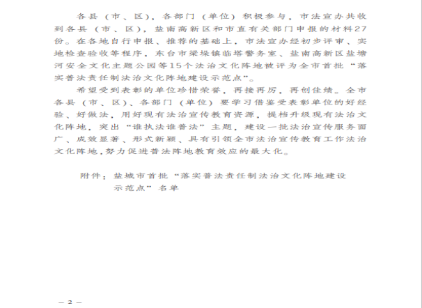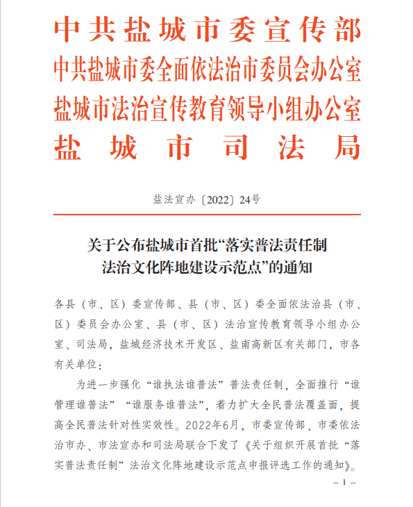 近期,由鹽城市委宣傳部、市委依法治市辦、市法宣辦、司法局4個(gè)部門(mén)單位發(fā)布關(guān)于公布鹽城市首批“落實(shí)普法責(zé)任制法治文化陣地建設(shè)示范點(diǎn)”的通知,江蘇鹽城港射陽(yáng)港開(kāi)發(fā)集團(tuán)有限公司榮獲相關(guān)稱號(hào)。