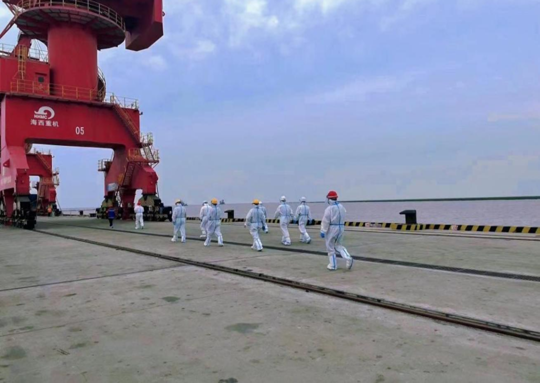 看,碼頭上高大的“鋼鐵士兵”一字排列,嚴(yán)陣以待,傳承延伸著港口奮進(jìn)的力量。