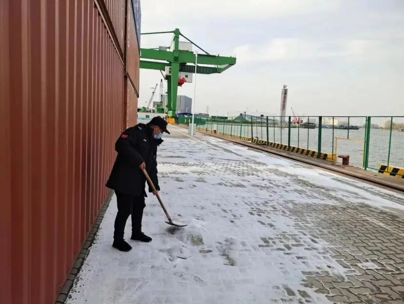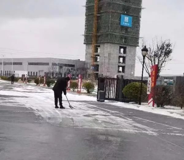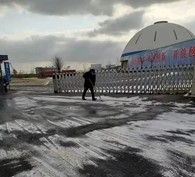 1月14日,鹽城迎來2023年第一場雪。為保障港區(qū)員工出行安全,確保港區(qū)安全生產(chǎn),實業(yè)集團物業(yè)公司立即啟動清雪除冰工作應急預案,打響2023年除雪保暢“第一仗”。