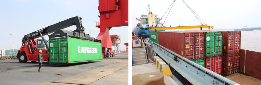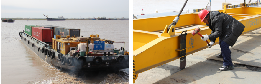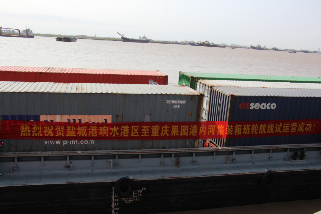 “嗚……”隨著汽笛的一聲長(zhǎng)鳴,滿載集裝箱的“大港集003”號(hào)貨輪緩緩駛?cè)臌}城港響水港區(qū)5#泊位碼頭,貨船上的工作人員向岸邊拋出系泊纜繩固定貨船,碼頭上等待已久的吊機(jī)開始作業(yè),有條不紊地將集裝箱裝卸到拖車上。至此鹽城港響水港區(qū)至重慶果園港內(nèi)河集裝箱班輪航線試運(yùn)營(yíng)成功,這是響水港區(qū)從“無(wú)”到“有”首次迎來(lái)的集裝箱貨輪。同時(shí)標(biāo)志著通榆河段阜寧至響水正式開通內(nèi)河集裝箱運(yùn)輸,掀開了鹽城港響水港區(qū)與阜寧港區(qū)“港港聯(lián)動(dòng)”的全新篇章。