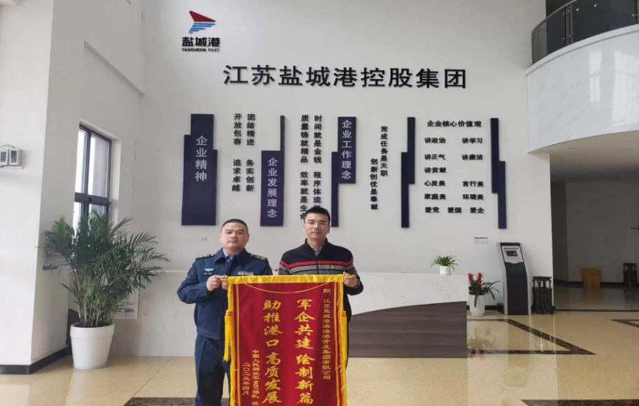 一直以來,鹽城港人具有著很深的“雙擁”情結(jié),始終站在支持國防事業(yè)的高度,立足促進軍民融合的角度,確保軍企共建工作落地、落實、落細、落好。此次港區(qū)獲贈錦旗,是對港區(qū)工作的莫大支持和鼓勵。濱海港區(qū)將會以此為動力,不負重托、不辱使命,進一步深化軍民融合發(fā)展新格局,奮力為國防事業(yè)和駐地軍隊現(xiàn)代化建設(shè)作出新的更大貢獻。