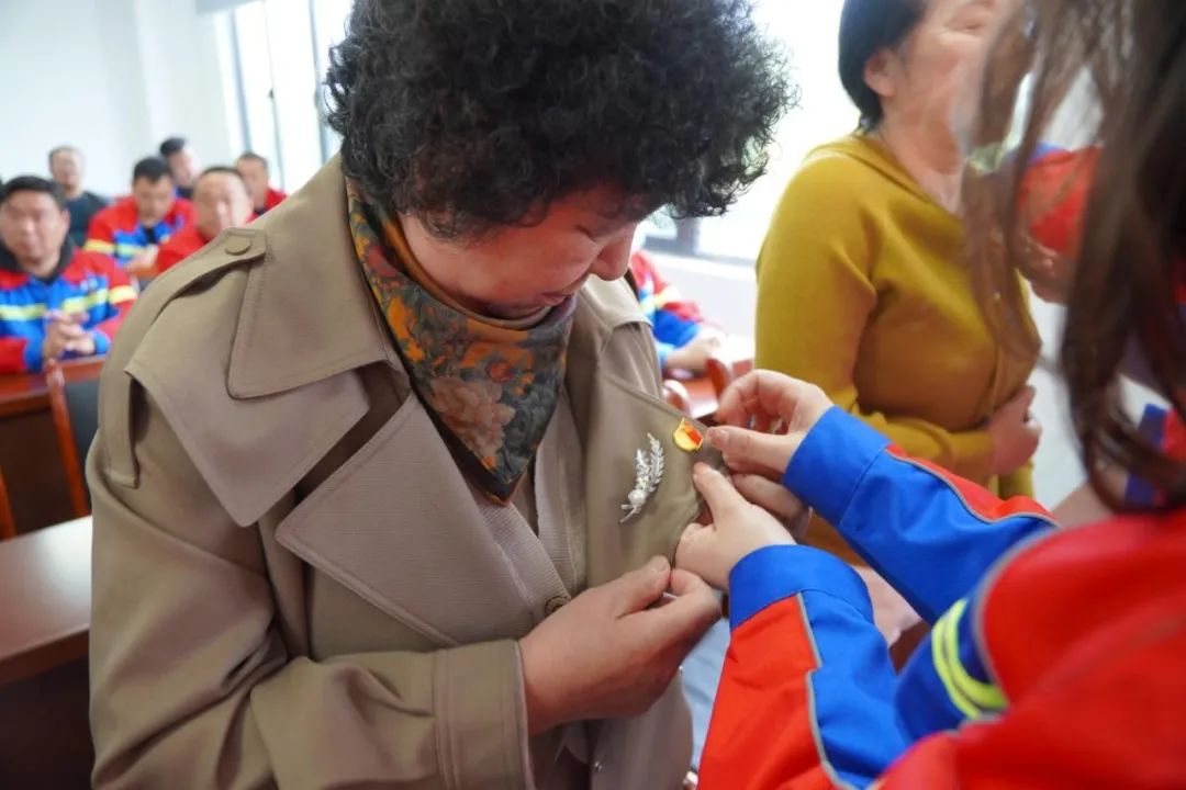 活動現(xiàn)場,職工代表認真嚴肅地為黨員媽媽們將紅燦燦的黨徽佩戴在左胸前,借以引導(dǎo)黨員們時刻銘記黨的宗旨和使命,發(fā)揮好黨員的先鋒模范作用。