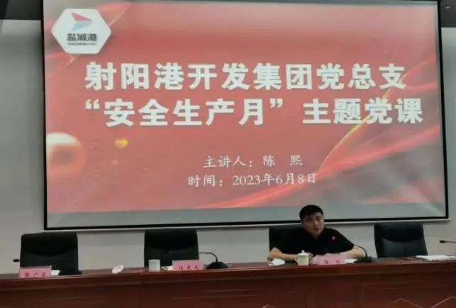 為切實發(fā)揮各級黨組織和廣大黨員在安全生產(chǎn)中的戰(zhàn)斗堡壘作用和先鋒模范作用,近日,射陽港區(qū)黨總支根據(jù)近年來習(xí)近平總書記關(guān)于安全生產(chǎn)的重要論述,結(jié)合港區(qū)安全風(fēng)險點,為全體員工和駐港單位上了一堂安全生產(chǎn)主題黨課,要求與會人員強化防范措施,在狠抓工作落實的同時,嚴格統(tǒng)籌發(fā)展和安全。