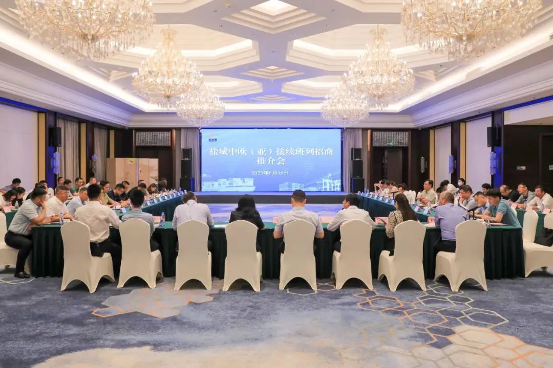 在鹽城港集團成立三周年之際,6月16日,中歐(亞)接續(xù)班列“鹽城號”正式開行。市委副書記、統(tǒng)戰(zhàn)部部長羊維達出席活動并宣布中歐(亞)接續(xù)班列“鹽城號”首發(fā)開通。市委常委、副市長吳本輝主持活動。省國鐵集團黨委副書記、總經(jīng)理丁建奇,省鐵路辦副主任馮兆祥出席并分別致辭。集團黨委書記、董事長周正雄參加活動并介紹相關(guān)情況,集團黨委副書記、董事、總經(jīng)理陸帥代表集團與7家企業(yè)簽訂中歐班列合作協(xié)議。