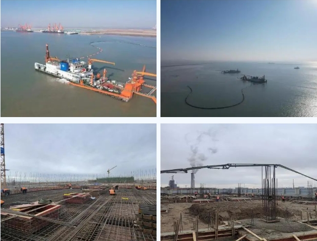 精雕細(xì)琢,匠心之作。項(xiàng)目條線人員爭(zhēng)分奪秒搶工期,推進(jìn)項(xiàng)目“加速跑”,為保障船舶通航能力與通航安全,條線人員緊鑼密鼓推進(jìn)5萬(wàn)噸級(jí)航道港池維護(hù)疏浚工作,日前,絞吸式挖泥船“新海豚”號(hào)火力全開,每日疏浚量達(dá)6萬(wàn)方,已完成工程總量的50%,預(yù)計(jì)春節(jié)前將全部完工。倉(cāng)儲(chǔ)物流項(xiàng)目現(xiàn)場(chǎng)氣勢(shì)寬宏,各施工業(yè)面井然有序、一片繁忙。目前,生產(chǎn)樓已完成一、二層框架結(jié)構(gòu),正在進(jìn)行展廳結(jié)構(gòu)鋼筋綁扎和四層疊合板安裝,預(yù)計(jì)春節(jié)前能夠完成生產(chǎn)樓主體結(jié)構(gòu)封頂。