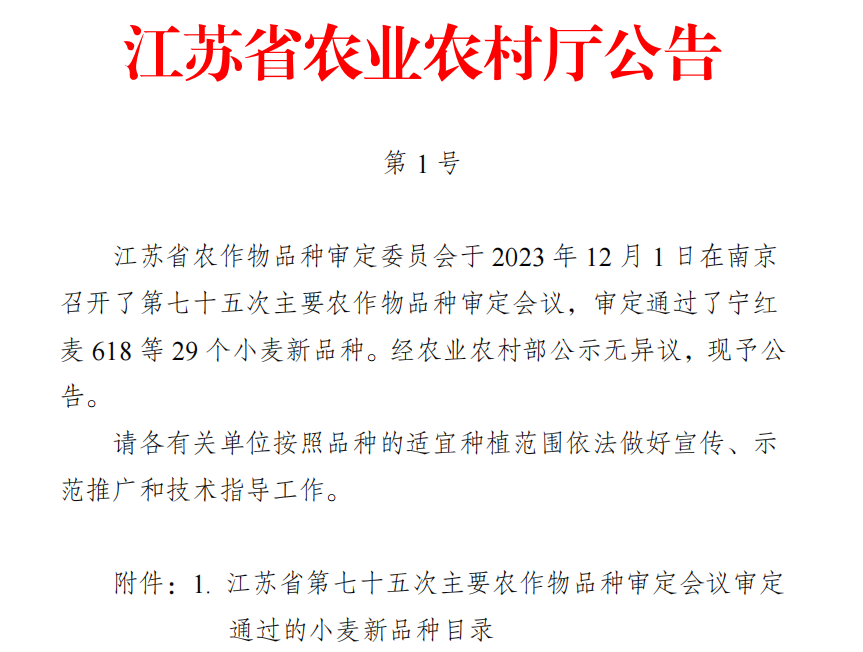 經(jīng)專家檢測審定,新審定的品種具有分蘗能力強、生育期短、株高矮,抗病性強、產(chǎn)量高等特點,是屬于抗性強、品質(zhì)優(yōu)的高產(chǎn)穩(wěn)產(chǎn)春性小麥新品種,適宜在江蘇省淮南麥區(qū)種植。