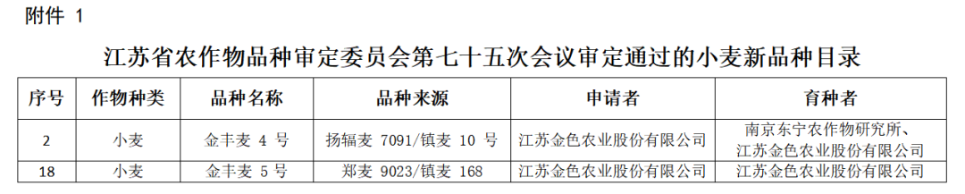 近日,農(nóng)業(yè)科技集團所屬金色農(nóng)業(yè)自主選育的“金豐麥4號”“金豐麥5號”兩個小麥品種順利通過江蘇省主要農(nóng)作物品種審定,并完成公示程序。這是繼2019年-2023年期間獲審的“金豐麥1、2、3號”后,又一批通過審定的小麥品種,至此,農(nóng)業(yè)科技集團形成具有自主品種權的“金豐麥”品系。
