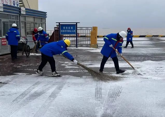碼頭職工眾志成城 迎風(fēng)戰(zhàn)雪