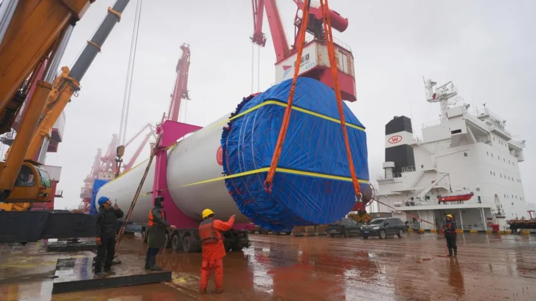 據(jù)介紹,新型旋筒船用風(fēng)帆系統(tǒng)是利用風(fēng)能來(lái)驅(qū)動(dòng)船舶的新技術(shù),是船舶行業(yè)綠色發(fā)展和智能化操控的一種全新模式,對(duì)于推動(dòng)船舶運(yùn)輸行業(yè)綠色低碳發(fā)展具有重要示范意義,船用風(fēng)力風(fēng)帆主梁更是船舶風(fēng)帆制造中的關(guān)鍵部件,承擔(dān)著船舶行駛過(guò)程中節(jié)能減排的重要任務(wù)。作為一種新型件大量重的超大件貨物,在裝卸、運(yùn)輸、堆放等作業(yè)過(guò)程中,需要高度的專(zhuān)業(yè)性和嚴(yán)謹(jǐn)性。