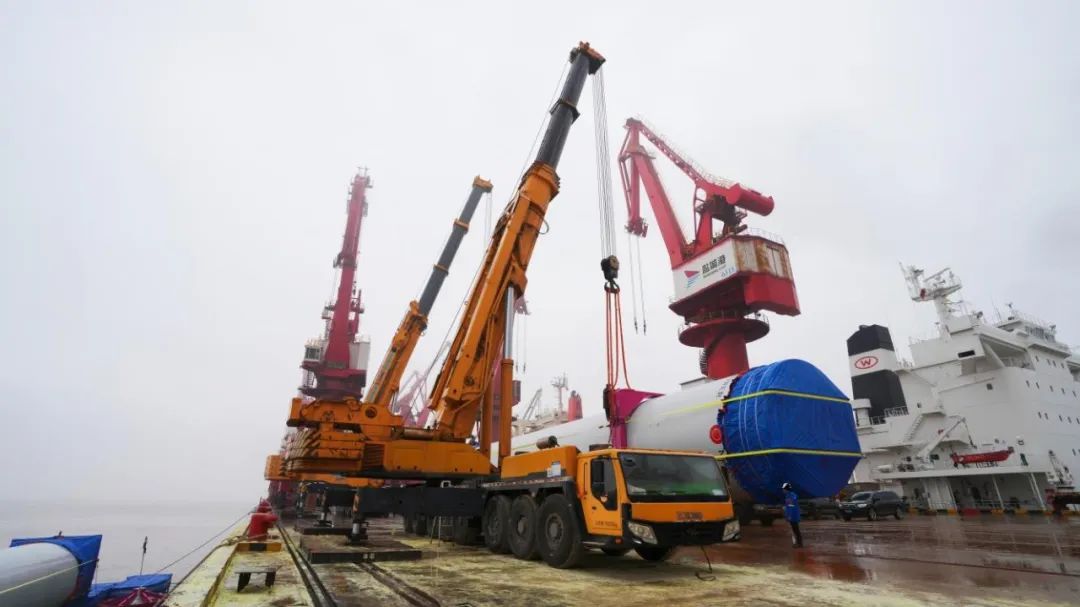 通用碼頭分公司針對(duì)該新型超大件重量大、直徑寬等作業(yè)特點(diǎn),制定了一系列嚴(yán)謹(jǐn)?shù)牟僮饕?guī)程和安全措施,憑借優(yōu)質(zhì)服務(wù)和專(zhuān)業(yè)化作業(yè)能力,經(jīng)過(guò)2小時(shí)的全力奮戰(zhàn),順利完成了此次作業(yè)任務(wù),優(yōu)質(zhì)高效的裝卸服務(wù)得到客戶(hù)高度肯定和一致好評(píng)。隨著去年12月首次試裝的圓滿完成,本次作業(yè)的順利結(jié)束不僅標(biāo)志著該航次正式走量的開(kāi)始,也為后續(xù)客戶(hù)合作打下良好基礎(chǔ)。