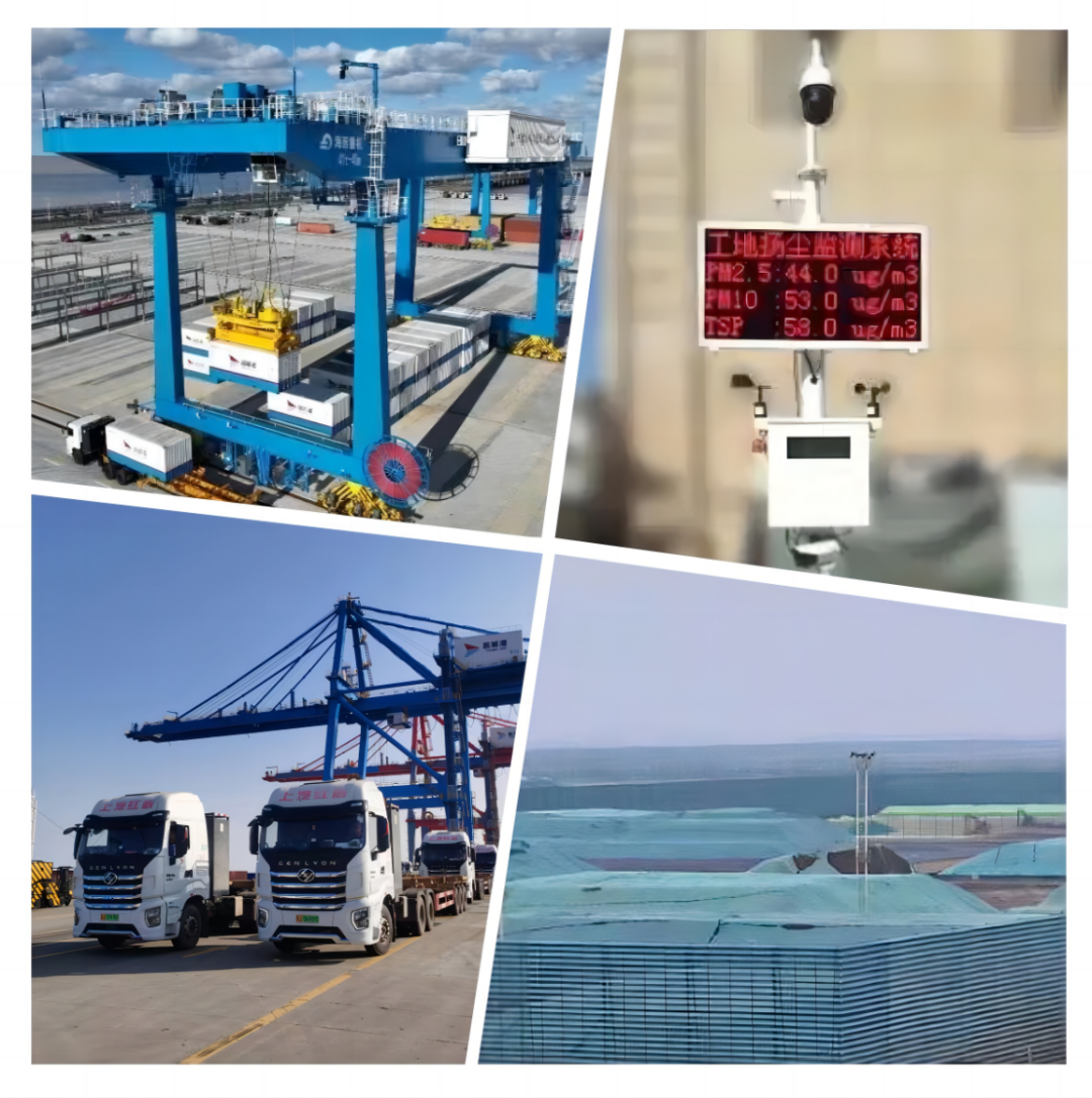 環(huán)顧大豐港區(qū),清潔能源的使用遍布四周。分布式太陽能光伏發(fā)電系統(tǒng)和1座主機3MW的風力發(fā)電站源源不斷地的將電能輸送到港區(qū)各地,40輛新能源電動集卡往來穿梭裝卸貨物。5049米的全密封散糧運輸氣墊機有效避免粉塵飛揚,26臺門座式起重機和18條帶式輸送機均已采用變頻節(jié)能技術(shù),39套大型機械中采用勢能回收技術(shù)達59%。18個粉塵在線監(jiān)測點,實時監(jiān)控廠區(qū)粉塵濃度。堆場長達3641米的防風抑塵網(wǎng)守護著碧水藍天,物料堆垛100%苫蓋,堆場噴淋系統(tǒng)常態(tài)化開啟;中水回收利用率達到60%;可綠化區(qū)域綠化率不低于80%。碼頭岸電建設實現(xiàn)100%全覆蓋,船舶污染物接受率達100%。自動化集裝箱堆場投入運營,大幅度提高集團港口數(shù)字化、智能化水平。干散貨堆場封閉式氣膜倉、綜合物流等倉庫屋頂光伏發(fā)電項目正在積極推進中。