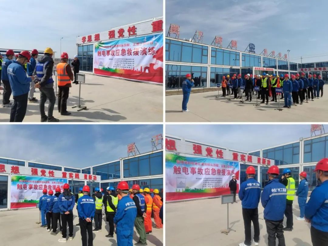 為進(jìn)一步推進(jìn)平安工地建設(shè),普及安全用電知識(shí),強(qiáng)化全員安全意識(shí),提高參建人員的應(yīng)急處置能力,射陽(yáng)港區(qū)聯(lián)合項(xiàng)目咨詢公司及射陽(yáng)港區(qū)通用碼頭四期、五期工程總承包單位開(kāi)展觸電事故應(yīng)急救援演練活動(dòng)。