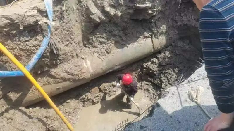 現(xiàn)場(chǎng),搶修人員根據(jù)破損情況有序開(kāi)展管道修復(fù)工作。臨近中午,維修人員仍在泥水中忙碌著……經(jīng)過(guò)緊張搶修,順利恢復(fù)正常供水。