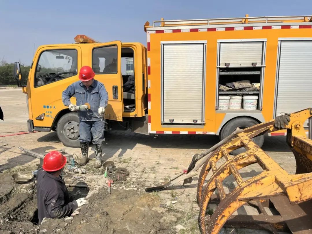 近日,大豐港水務(wù)公司報(bào)修熱線突然響起,施工方報(bào)告:“在上海港路路面出現(xiàn)大量滲水,可能是供水管道漏了”。水務(wù)公司工程搶修人員聞?dòng)嵑?,立即趕赴現(xiàn)場(chǎng)。