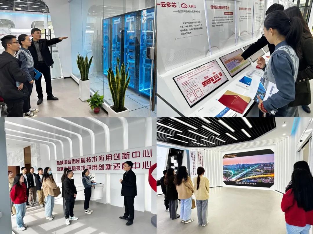 活動現(xiàn)場,大家參觀了鹽城市信息創(chuàng)新與密碼應(yīng)用技術(shù)保障基地展廳并觀看了信創(chuàng)基地的宣傳片。深入學(xué)習(xí)信息安全和密碼技術(shù)應(yīng)用方面的成就、網(wǎng)絡(luò)與安全領(lǐng)域的創(chuàng)新實(shí)力和技術(shù)優(yōu)勢,對維護(hù)國家安全有了更直觀、深刻、清晰的認(rèn)識。
