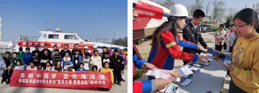 本次“港口開(kāi)放日”活動(dòng),射陽(yáng)港區(qū)精細(xì)部署,積極對(duì)接相關(guān)單位,組織海通中學(xué)學(xué)生代表參觀(guān)射陽(yáng)港碼頭和作業(yè)區(qū),現(xiàn)場(chǎng)發(fā)放港區(qū)宣傳冊(cè),詳細(xì)介紹港口發(fā)展進(jìn)程與現(xiàn)狀;隨后乘坐海巡0616輪、海巡16505輪,在射陽(yáng)港區(qū)碼頭航道區(qū)域巡航,向同學(xué)們講解航道保障和通航安全知識(shí),全面展示港口形象和發(fā)展成就。