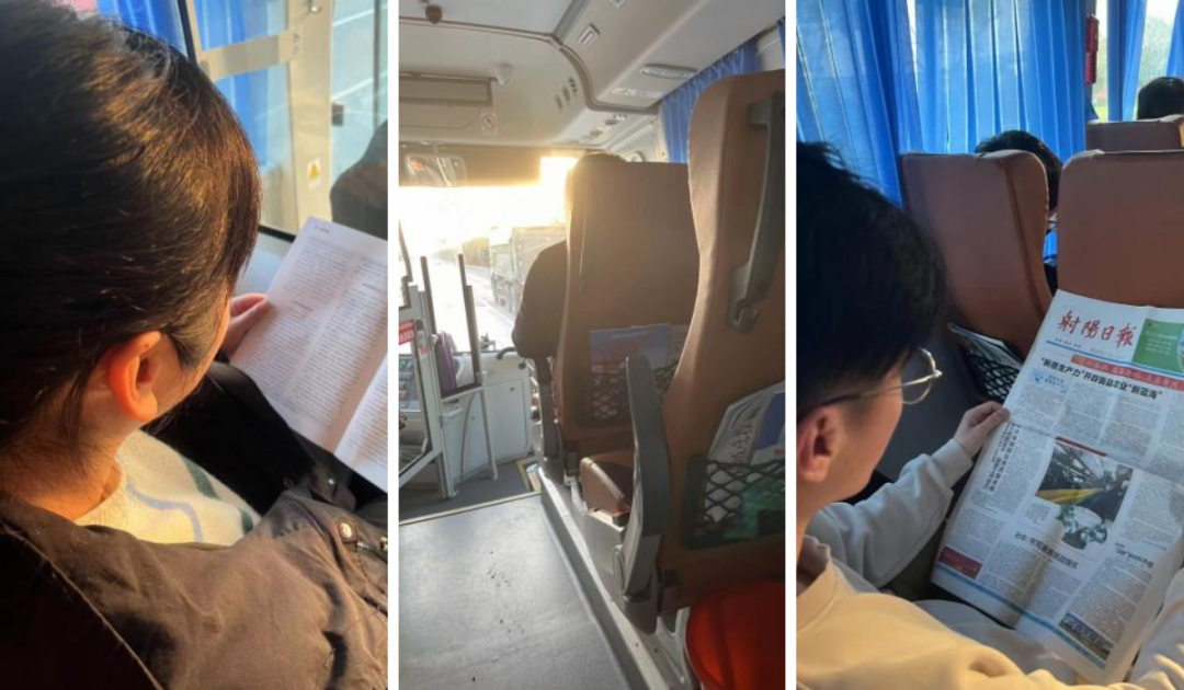 4月初號(hào)召大家?guī)?lái)家中閑置圖書,與集團(tuán)報(bào)刊、訂閱報(bào)紙一起裝點(diǎn)班車,漸漸地班車上從每人各自捧著手機(jī)的沉默變成展開報(bào)紙、翻閱書籍的安靜,小小巴士裝載著滿滿書香一路向前。
