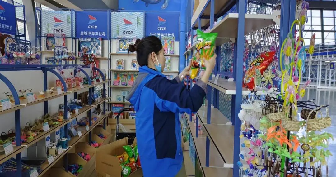 景區(qū)各小組成員在部門負(fù)責(zé)人的帶領(lǐng)下積極備戰(zhàn)活動(dòng)前的各項(xiàng)準(zhǔn)備工作。此次活動(dòng),結(jié)合大豐港動(dòng)物園客流量資源優(yōu)勢,借助海洋劇場海豚錯(cuò)峰表演時(shí)間,將游客進(jìn)行引流。同時(shí),為滿足游客多樣化需求,促進(jìn)景區(qū)二次消費(fèi),海洋劇場商品柜臺準(zhǔn)備了數(shù)量充足、類別豐富的商品品類,工作人員正在提前往商品陳展架上擺滿各式各樣的商品。