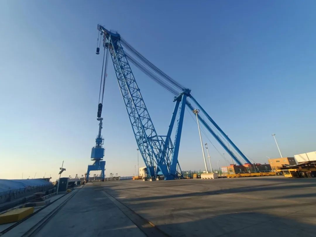 桅桿式起重機(俗稱桅桿吊),桅桿吊是一種能吊裝其他起重機械難以吊裝的特殊構筑物和重大結構的起重機,鹽城港桅桿吊主要從事風電相關的塔筒及風葉等大型配件其他相關大型設備的吊裝,目前響水、大豐、射陽均有相應的起重設備,其中響水重件碼頭桅桿吊起重負荷可高達1250噸,為華東地區(qū)最大負荷的港口起重設備。