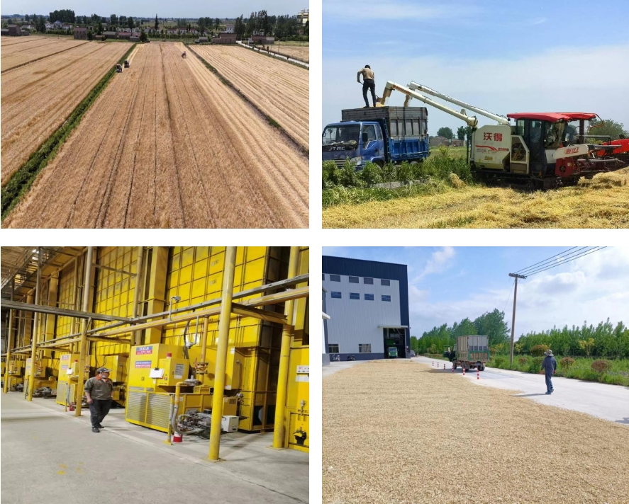 從收割—過磅—烘干,各部門配合生產(chǎn)調(diào)度,全力參與“三夏”大忙,形成“田頭、場頭、倉頭”三位一體的工作機(jī)制。農(nóng)技工作人員深入田間地頭,全面摸排登記農(nóng)田實(shí)際情況,時(shí)刻關(guān)注轄區(qū)雨情,研判各地塊成熟時(shí)間,按照“成熟一片,收割一片”的原則,第一時(shí)間組織聯(lián)合收割機(jī)及時(shí)入場,確保按期完成收割任務(wù);加工中心的6條種子烘干線馬力全開,做到人歇機(jī)不歇,24小時(shí)晝夜不停搶烘收割回來的麥子,確保達(dá)到標(biāo)準(zhǔn)水分,安全入庫歸倉。