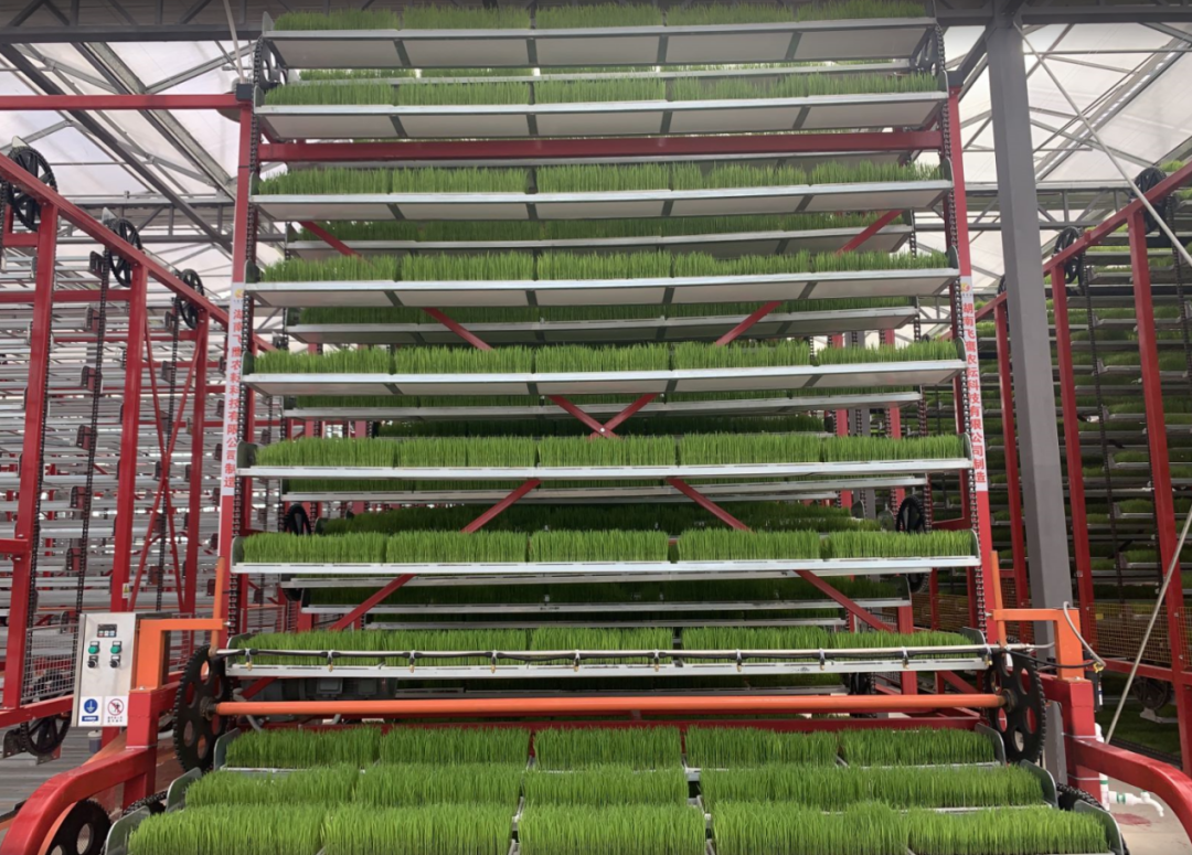 在智能化育秧生產(chǎn)車間,16臺嶄新的大型智能化育秧機(jī)正在開足馬力,抓緊時間培育今年首批常規(guī)稻秧苗,層層疊疊的育秧盤內(nèi),綠油油的秧苗正茁壯成長。隨著齒輪轉(zhuǎn)動,育秧盤隨著自動滑軌上下循環(huán),育秧床上裝有光照傳感器、二氧化碳傳感器等設(shè)備,可實現(xiàn)調(diào)溫、調(diào)濕、補(bǔ)水、增光完全自動化、智能化,一次性可育苗600多畝。這種培育方式,不僅能節(jié)約土地、種子、肥料和人工成本,還可縮短育秧周期,保證預(yù)期移栽時間,為后期機(jī)械化插秧和田間管理奠定堅實基礎(chǔ),跑出水稻提質(zhì)增產(chǎn)“加速度”。