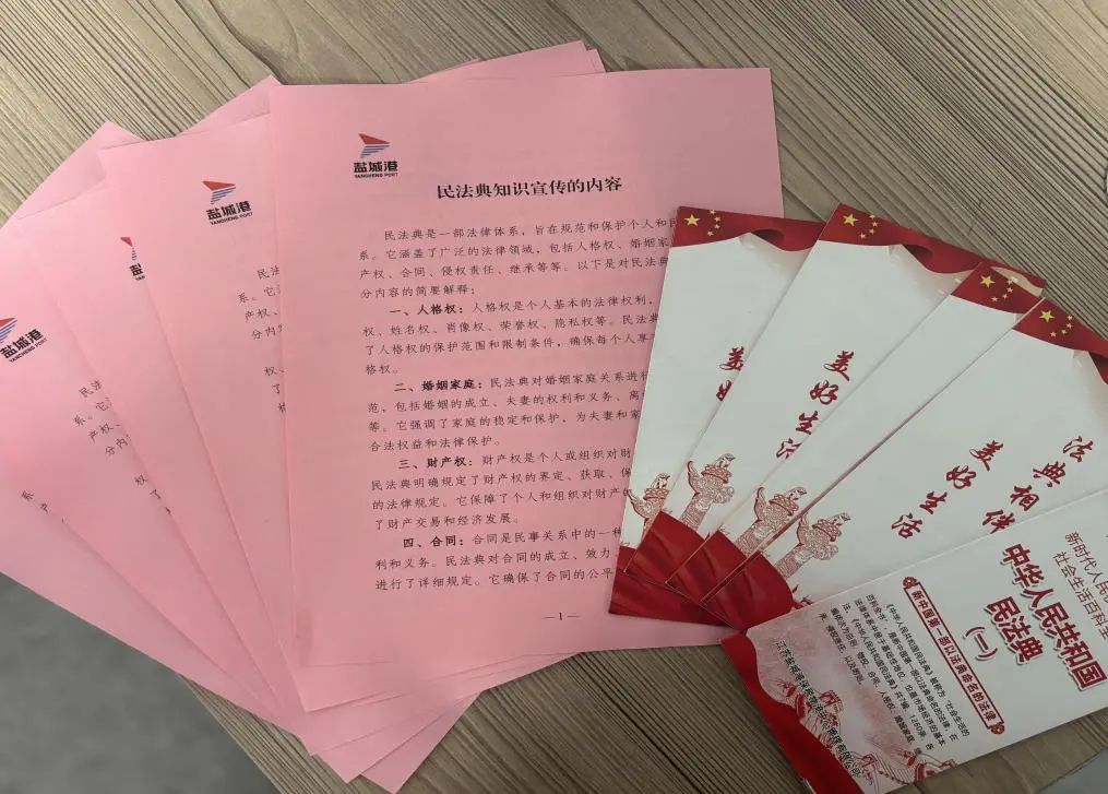 制作發(fā)放民法典知識內(nèi)容宣傳單及民法典普法宣傳冊,組織全體人員利用晨會時間加強(qiáng)學(xué)習(xí),并在跨境電商園區(qū)向來往園區(qū)客人發(fā)放宣傳單,以此增強(qiáng)大家學(xué)法、懂法、用法意識,合力營造良好法治氛圍。