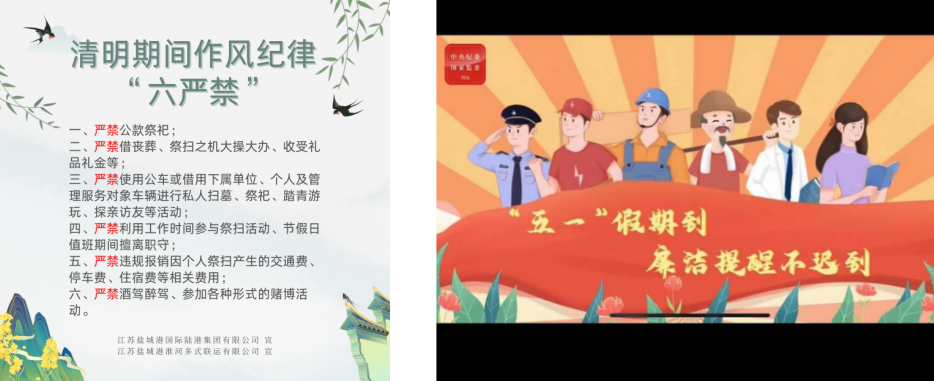 微信提醒送廉。在節(jié)假日前將嚴(yán)禁公車私用、嚴(yán)禁大操大辦、嚴(yán)禁收受禮品禮金等紀(jì)律要求設(shè)計(jì)制作成《節(jié)日期間作風(fēng)紀(jì)律“六嚴(yán)禁”》海報(bào),利用手機(jī)微信等平臺(tái),發(fā)布中紀(jì)委節(jié)前廉潔提醒動(dòng)畫,同時(shí)以短信形式為干部職工送上廉潔過(guò)節(jié)溫馨提示。一張海報(bào)、一個(gè)動(dòng)畫、一條短信猶如一縷清風(fēng),通過(guò)“潤(rùn)物無(wú)聲”的關(guān)懷與警醒,營(yíng)造了風(fēng)清氣正的節(jié)日氛圍。