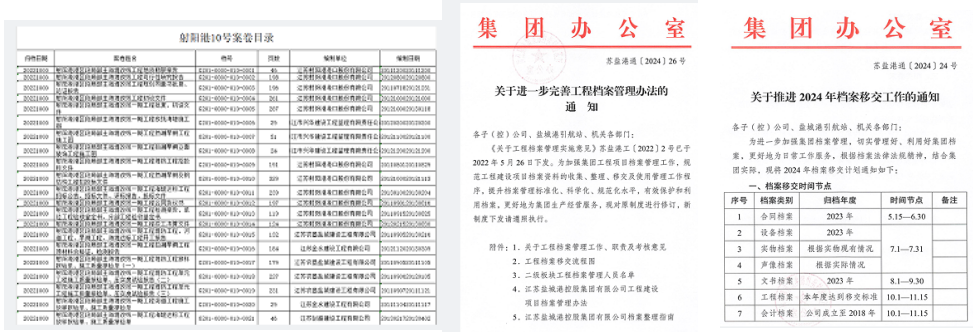 為切實(shí)做好工程項(xiàng)目檔案的精細(xì)化管理,射陽港區(qū)認(rèn)真學(xué)習(xí)、貫徹執(zhí)行鹽城港集團(tuán)關(guān)于檔案精細(xì)化管理要求,在全體系、各層面、多角度上下功夫,堅(jiān)持“標(biāo)準(zhǔn)化”整檔、“集約化”存檔、“數(shù)字化”建檔,不斷推動(dòng)檔案管理數(shù)據(jù)化體系建立健全,為工程項(xiàng)目提供更加精準(zhǔn)有效的數(shù)據(jù)支撐,保障項(xiàng)目進(jìn)度暢通推進(jìn)。