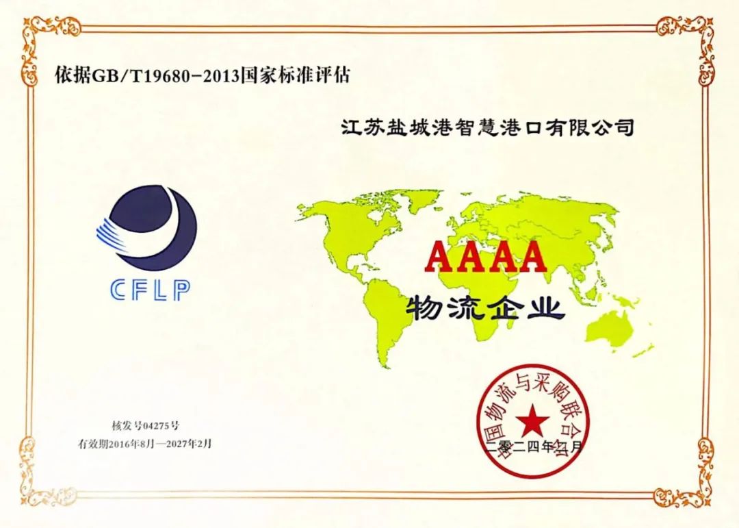 近日,由中國物流與采購聯(lián)合會主辦的“第七屆中國(合肥)物流與供應(yīng)鏈金融創(chuàng)新發(fā)展大會暨37屆物流企業(yè)授牌大會”在安徽合肥盛大召開,鹽城港智慧港口公司憑借出色的物流服務(wù)質(zhì)量和規(guī)范化的運營水平,被評為“AAAA級物流企業(yè)”,不僅標(biāo)志著智慧港口公司在規(guī)范化、標(biāo)準化運營方面已達到國家標(biāo)準,物流服務(wù)模式得到了行業(yè)的高度認可,也為公司進一步發(fā)展和提升品牌影響力奠定了堅實的基礎(chǔ)。